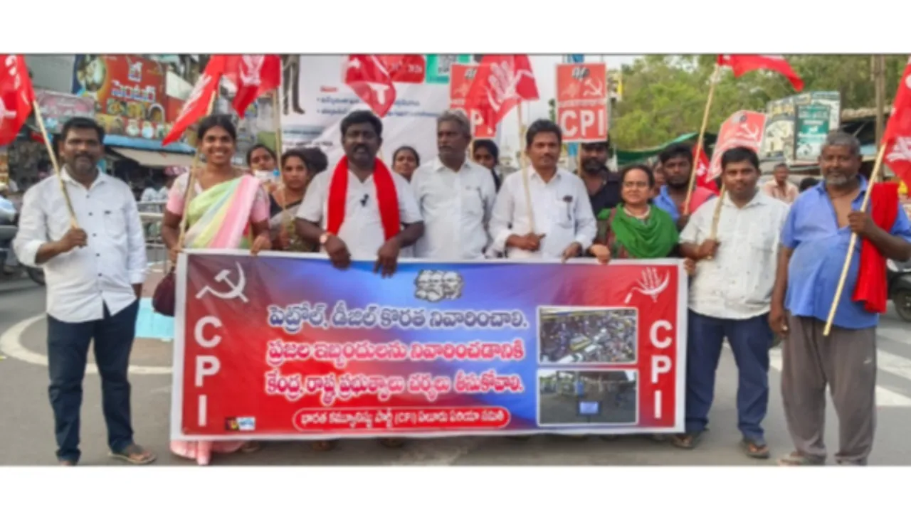 ఏలూరులో పెట్రోల్–డీజిల్ కొరతపై సిపిఐ ఆందోళన