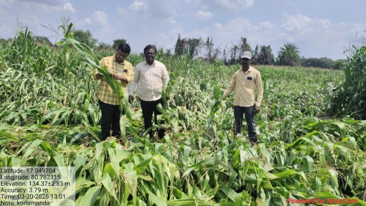 ఎన్టీఆర్ జిల్లా విస్సన్నపేట మండలంలో ఈదురు గాలులు, అకాల వర్షాల కారణంగా మొక్కజొన్న పంటలు భారీగా దెబ్బతిన్నాయి. మండల వ్యవసాయ అధికారి షేక్ టిప్పు సుల్తాన్, వ్యవసాయ విస్తరణ అధికారి జి. ఉషారాణి రైతులతో కలిసి ప్రభావిత పంటలను పరిశీలించారు.