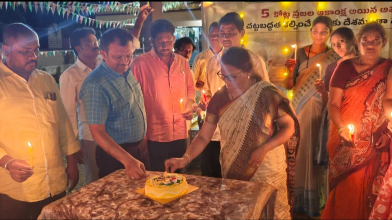 ఈ సందర్భంగా తహసిల్దార్ స్లీవ జోజి ఆధ్వర్యంలో కేక్ కటింగ్ నిర్వహించి, “జై అమరావతి” నినాదాలతో కార్యాలయ ప్రాంగణం మార్మోగింది. రెవెన్యూ సిబ్బంది అందరూ కలిసి ఆనందాన్ని పంచుకుంటూ, ఈ చారిత్రాత్మక ఘట్టాన్ని ఉత్సాహంగా జరుపుకున్నారు.