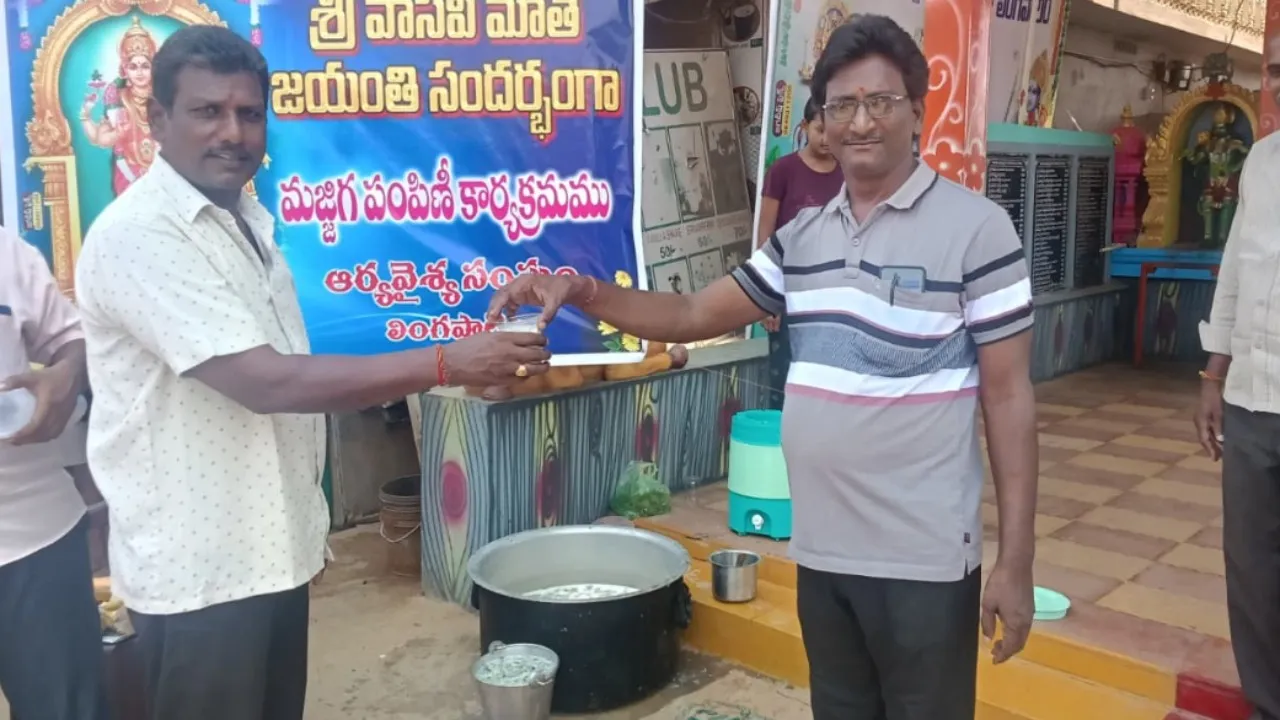 ఆర్యవైశ్య సంఘం వారు శ్రీ వాసవి మాత జయంతి సందర్భంగా మజ్జిగ పంపిణీ కార్యక్రమాన్ని ఘనంగా నిర్వహించారు. ఈ కార్యక్రమంలో ఆర్యవైశ్య సంఘ సభ్యులు ప్రజలందరికి శుభాకాంక్షలు తెలుపుతూ మజ్జిగ పంపిణీ చేశారు. గ్రామంలోని ప్రజలు ఈ కార్యక్రమంలో భాగస్వాములై మజ్జిగను ఆనందంగా స్వీకరించారు.