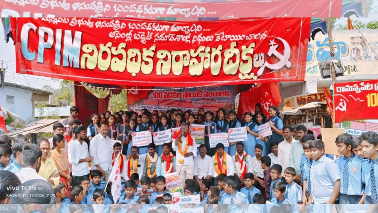 ప్రభుత్వం నుండి స్పష్టమైన హామీ ఇచ్చేదాకా నిరవధిక దీక్షలు విరమించేది లేదని ప్రాణాలు పోయినా దీక్ష కొనసాగిస్తామని సిపిఎం జిల్లా కార్యదర్శి వర్గ సభ్యుడు జిల్లాల పెంటయ్య తెలిపారు.ప్రజలకు మెరుగైన వైద్యం అందించాలని సిపిఎం రామన్నపేట మండల కమిటీ ఆధ్వర్యంలోని చేపట్టిన నిరవధిక నిరాహార దీక్షలు రెండో రోజుకు చేరిన సందర్భంలో మండలంలోని వివిధ రంగాల సంస్థలు, ప్రజల నుండి ప్రజాదరణ పెరుగుతుందని అన్నారు. దీక్షలు రెండో రోజుకు చేరిన సందర్భంగా వివేకానంద డివైన్ మోడల్ స్కూల్, డాన్ బాస్కో స్కూల్ యాజమాన్యం విద్యార్థిని విద్యార్థులు, మండల పాత్రికేయులు,మండల మెడికల్ షాప్స్(కెమిస్ట్రీ అండ్ డ్రగ్గిస్ట్) మండల అసోసియేషన్ సభ్యులు, మండల ఎమ్మార్పీఎస్ నాయకులు, లాయర్స్ యూనియన్ అసోసియేషన్ నాయకులు, డివైఎఫ్ఐ, ఎస్ఎఫ్ఐ,పూల బండ్ల షాప్ల మహిళలు స్వచ్ఛందంగా నిరవధిక నిరాహార దీక్షలో శిబిరానికి విచ్చేసి సంఘీభావం తెలిపి మద్దతు ప్రకటించడం జరిగిందని తెలిపారు. ఒకవైపు నాయకుల ఆరోగ్యం క్షీణిస్తున్నప్పటికీ ప్రభుత్వం నుండి అధికారుల నుండి ఎలాంటి స్పందన రాకపోవడం ప్రజాపాలనలో ప్రజల కోసం పోరాటానికి మద్దతు తెలపకపోవడం విచారకరమని అన్నారు. వంద పడకల ఆస్పత్రి కొరకు ప్రజాప్రతినిధులు అధికారులు స్పష్టమైన హామీ ఇవ్వాలని లేని పక్షంలో రామన్నపేట మండల బందుకు పిలుపునిచ్చి వివిధ రంగాల ప్రజలను, మేధావులను,వివిధ రాజకీయ పార్టీలను సమీకరించి పెద్ద ఎత్తున ఆందోళన ఉదృతం చేస్తామని హెచ్చరించారు