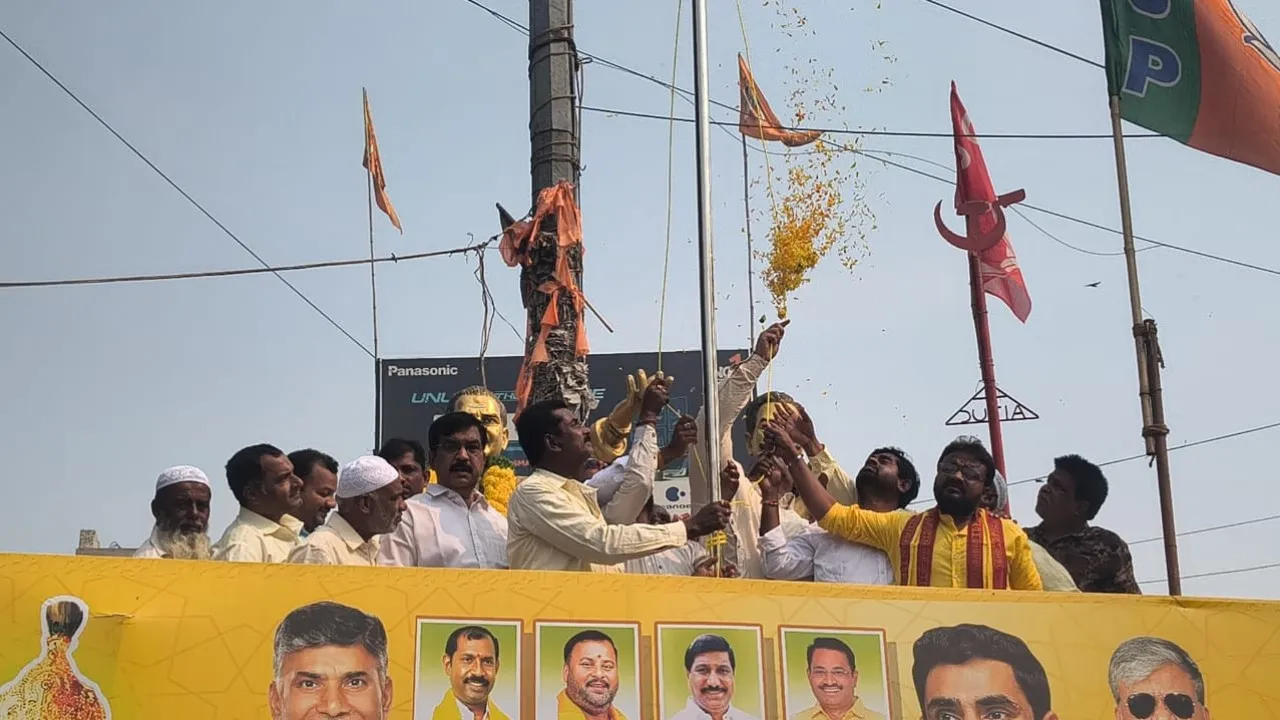 ఎన్ టి ఆర్ సర్కిల్ లో బాణా సంచా పేల్చి కేక్ కటింగ్ నిర్వహించిన తెలుగు దేశం పార్టీ నాయకులు, కార్యకర్తలు