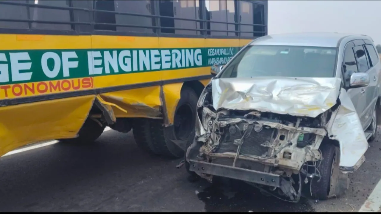 సమాచారం మేరకు, కళాశాల బస్సు ఇంకొల్లు నుంచి నరసరావుపేట వైపు విద్యార్థులతో వెళ్తుండగా, పసుమర్తి వద్ద ఈ ఘటన చోటుచేసుకుంది. వేగంగా వచ్చిన ఇన్నోవా వాహనం అదుపు కోల్పోయి బస్సును ఢీకొట్టినట్లు తెలుస్తోంది.
